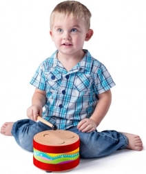 Hra na bubínek podporuje přirozený rozvoj rytmického cítění, jemné motoriky i soustředění. Součástí balení je dřevěná palička, se kterou mohou děti bezpečně zkoušet první rytmy a písničky.