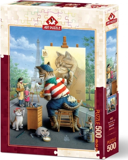 Stylové puzzle s motivem kočičího malíře potěší děti i dospělé, kteří milují kreativní motivy a klid u skládání. Díky 500 dílkům je ideální na odpolední relax i jako dárek pro milovníky koček. Hotový obraz o rozměrech cca 34 × 48 cm se skvěle hodí k zarámování.