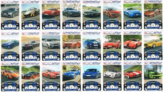 Zábavná karetní hra pro děti i dospělé s tématem sportovních vozů. Každá karta obsahuje reálné technické údaje (objem motoru, počet válců, hmotnost, zrychlení 0–100 km/h, výkon a nejvyšší rychlost). Balíček nabízí 32 karet rozdělených do 8 kvartet – ideální pro minimálně 3 hráče a napínavé rodinné hraní.