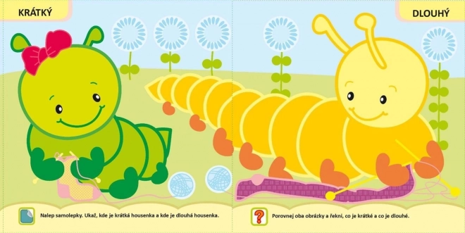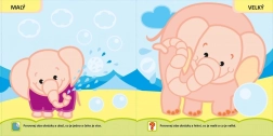 Tato interaktivní knížka od Svojtka & Co. přináší jednoduché a srozumitelné úkoly: děti porovnávají, co je malé vs. velké, plné vs. prázdné nebo krátké vs. dlouhé, a lepí samolepky na správná místa. Ideální pro první učení a rozšiřování slovní zásoby.
