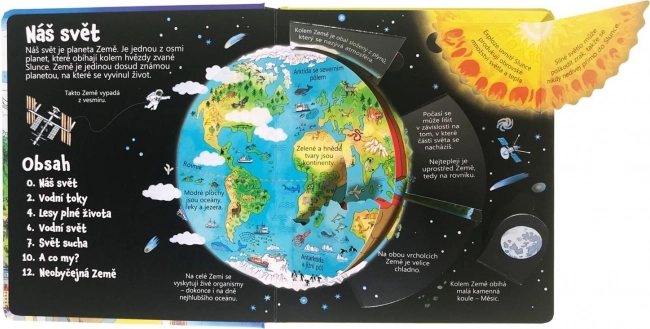 Objevte, čím naše planeta Země skutečně je, a prozkoumejte cesty řek od pramenů až do moře. Pronikejte do tajů deštných lesů, objevujte život v mořích a oceánech i v nejnehostinnějších koutech světa! Tato kniha obsahuje více než 80 interaktivních odklápěcích okének, která inspirují k objevování světa.