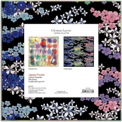 Toto důmyslné oboustranné puzzle Christian Lacroix Photocall je perfektní pro milovníky módy a francouzské kultury. Na jedné straně se nachází haute couture módní skici a hvězdné výbuchy, zatímco druhá strana nabízí detailně ilustrovaný květinový a černý design.