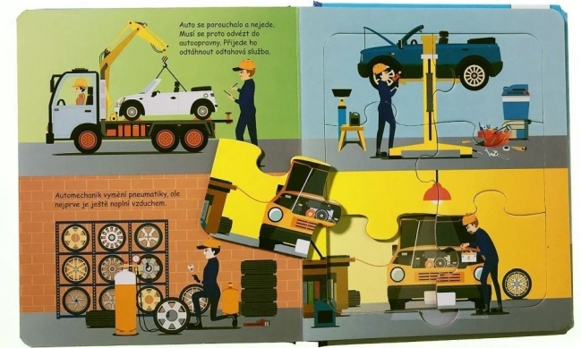 Tato knížka je ideální pro děti fascinované světem dopravních prostředků. Pět skládankových puzzle umožní malým čtenářům nejen číst, ale i skládat vlastní vozidla.