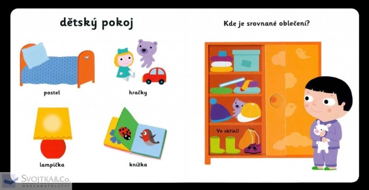 - Ideální pro nejmenší děti – odolné leporelo s krátkými popisky a jasnými motivy.