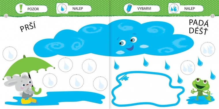 Objevujte s vašimi nejmenšími svět počasí s roztomilým hrdinou – malým zajíčkem. Kniha plná jednoduchých aktivit pomáhá dětem hravě poznat slunce, déšť, vítr, blesky i sníh. Děti budou vybarvovat, spojovat a lepit samolepky na správná místa, čímž rozvíjejí jemnou motoriku, soustředění i základní znalosti o počasí.