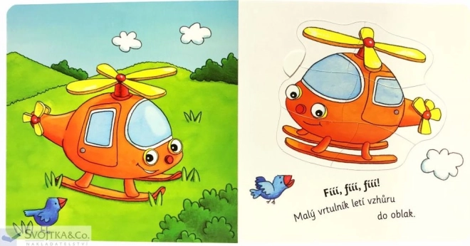 Tato interaktivní knížka kombinuje čtení a skládání jednoduchých puzzle. Pět tematických skládaček na téma vše, co jezdí, létá a pluje, vybízí děti k objevování a rozvíjení koordinace oko–ruka.