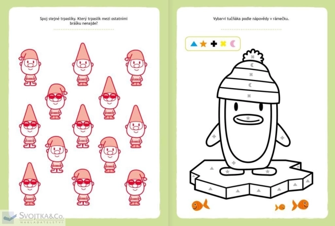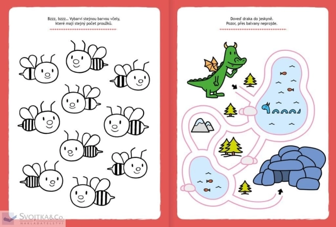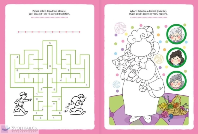 Tento sešit od nakladatelství Svojtka & Co. přináší dětem hodiny smysluplné zábavy. Najdeš v něm bludiště, vybarvování podle klíče, spojování bodů i kreslení krok za krokem – vše pro rozvoj kreativity a souvislého myšlení. Ideální na doma, na cesty i do čekáren.