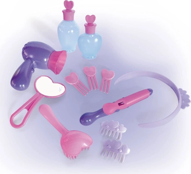 - 12 ks doplňků – flakonky, fén, čelenka, sponky a další pro realistickou hru.