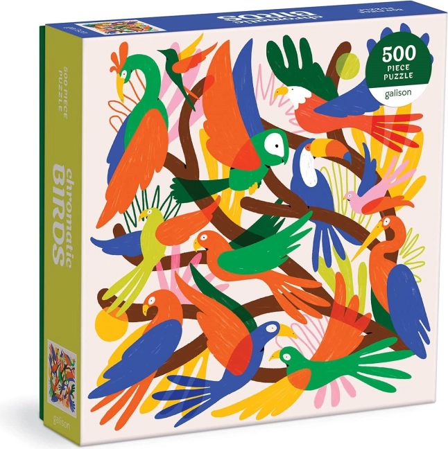 Toto elegantní čtvercové puzzle přináší barevnou podívanou plnou detailů. Motiv chromatických ptáků je ideální pro všechny milovníky přírody a designu, kteří hledají relaxační zábavu a zároveň stylový doplněk do interiéru.