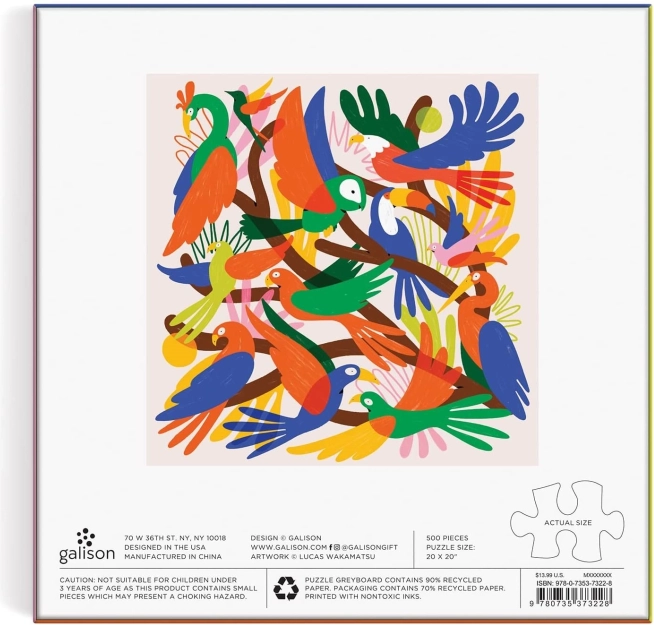 Objevte radost ze skládání se stylovým čtvercovým puzzlem s motivem chromatických ptáků. Balení obsahuje 500 dílků a praktickou předlohu motivu pro snadnější skládání. Po sestavení vznikne dekorativní obraz o rozměru cca 50,8 × 50,8 cm.