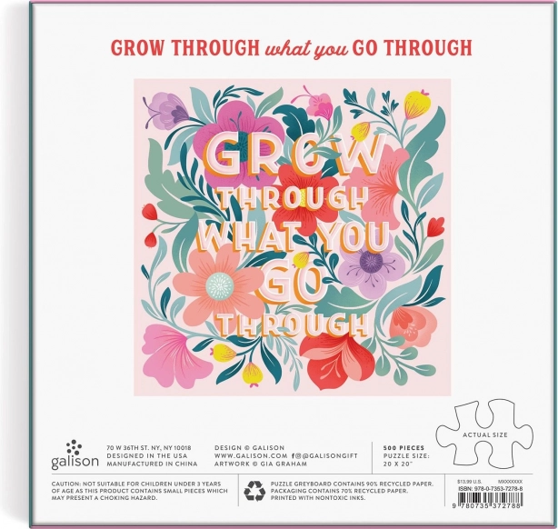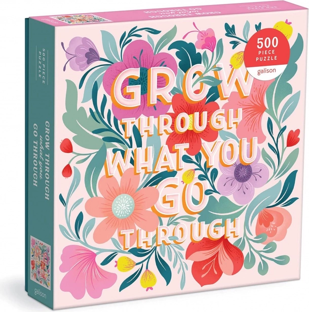 Užijte si relax s designovým skládáním: čtvercové puzzle GALISON „Grow Through What You Go Through“ s 500 dílky nabízí stylový motiv, kvalitní tisk a přiloženou předlohu pro pohodlné skládání. Hotové dílo má rozměr 50,8 × 50,8 cm – ideální na zarámování.