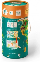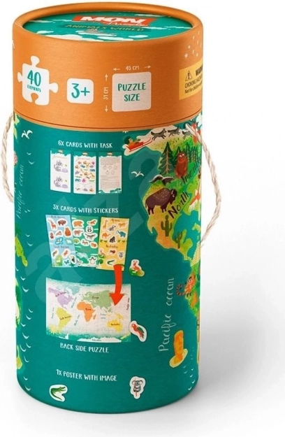 Objevte hravou sadu pro děti od 3 let, která kombinuje oboustranné puzzle se 40 dílky, karty s úkoly, plakát a samolepky. Dárkový tubus skrývá hodiny zábavy a zároveň rozvíjí jemnou motoriku, logické myšlení a poznávání zvířat z celého světa.