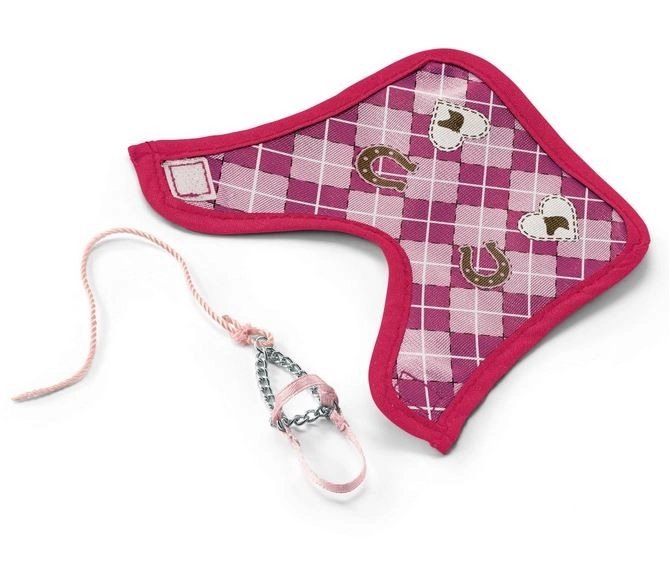 Růžovo‑fialová dečka s diamantovým vzorem, srdíčky a podkovami dodá scénkám ze stáje šmrnc a autentičnost.