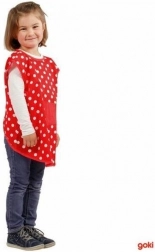 Tato stylová zástěra je skvělým pomocníkem pro všechny malé kuchaře, výtvarníky a kreativce. Díky roztomilému puntíkovanému vzoru si ji děti rychle oblíbí, zatímco rodiče ocení účinnou ochranu oděvu před ušpiněním. Snadné oblékání přes ruce a zavazování na zádech zaručuje pohodlné nošení.