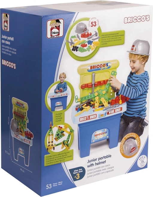 Objevte nekonečnou zábavu s přenosným pracovním stolem, který přináší dětem možnost stát se malými řemeslníky. Tento barevný set obsahuje 53 dílů, včetně helmy, která dodá správný pocit z práce. Děti mohou vytvářet různé konstrukce a učit se základům mechaniky a logiky prostřednictvím hry.