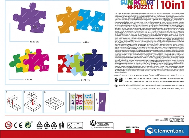 Krabice plná zábavy s oblíbenými kamarádkami z Rainbow High nabízí hned 10 puzzle v jednom balení o různé obtížnosti. Díky různým velikostem dílků a motivům si užijí skládání menší i větší děti, přičemž rozvíjejí trpělivost, jemnou motoriku a představivost. Exkluzivní tisk Clementoni SuperColor zaručuje jasné a zářivé barvy a hotové obrázky v několika velikostech.