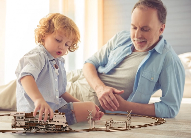 Součástí je krátká část trati, na které můžete model předvádět. Precizní laserové výřezy z březové překližky zajišťují hladké sestavení bez lepidla.