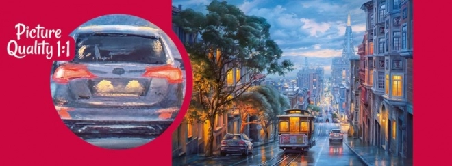 Skládanka "Dešťové odlesky" nabízí fascinující pohled na město po dešti, kde hra světla a stínů vytváří tajemnou atmosféru. Díky rozměrům 50 x 70 cm je výsledný obraz dokonalou dekorací pro váš domov.