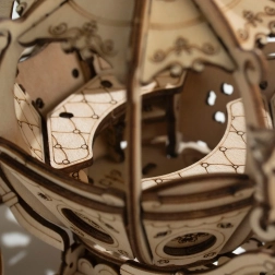 Sestavený z propojovatelných dřevěných dílů, tento model vystavuje umění precizního řezání a uměleckého zpracování.