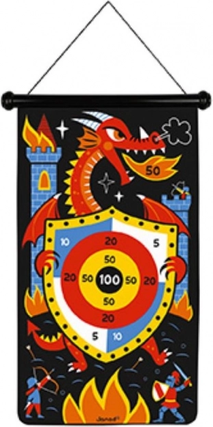 Terč snadno zavěsíte doma i venku – na stěnu, kliku nebo strom. Hra skvěle podporuje jemnou motoriku, koordinaci oko–ruka i trpělivost. Atraktivní motiv draků a hradu podněcuje fantazii a udrží děti v pozorné hře.