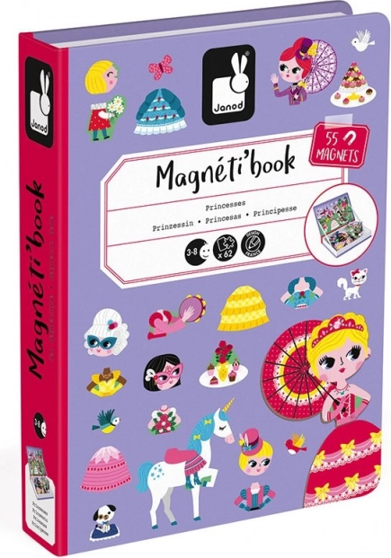 Objevte kouzlo tvoření s magnetickou knihou Janod Magnetibook princezny. Děti mohou podle předloh nebo vlastní fantazie skládat půvabné scény z 62 magnetických dílků. Praktické balení ve tvaru knihy je ideální na cesty, rozvíjí kreativitu, jemnou motoriku a pozornost. Součástí je 7 kartiček s předlohami. Vhodné pro děti od 3 let.