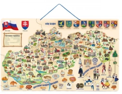 Tato magnetická mapa Slovenska je ideální pro rozvoj zeměpisných znalostí, logiky a jemné motoriky. Dílky představují jednotlivé okresy s jasně vyznačenými hranicemi a tematickými obrázky, které dětem pomáhají pochopit místní charakteristiky – od přírody přes zemědělství až po památky.