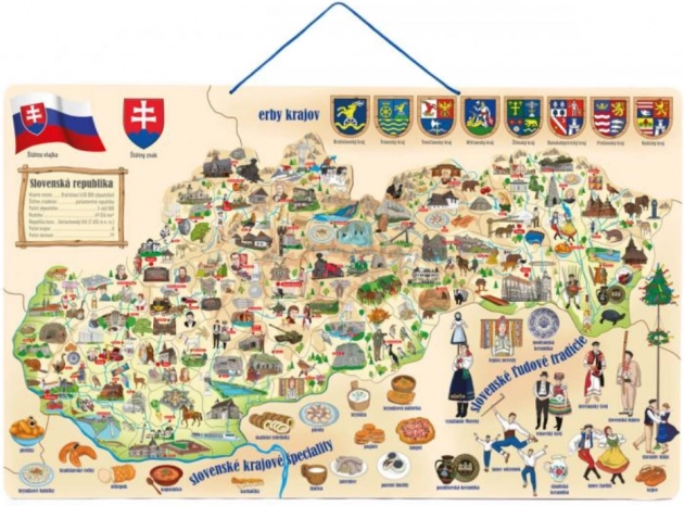 Objevte zábavnou a vzdělávací hračku, která v sobě spojuje naučné puzzle, magnetickou mapu Slovenska a společenskou hru v jednom. Děti se hravou formou naučí okresy, jejich hlavní města, řeky a pohoří, a díky ilustracím snadno pochopí, co je pro jednotlivé regiony typické.