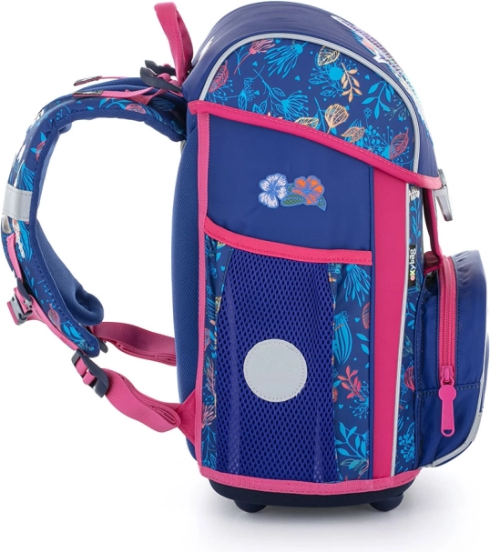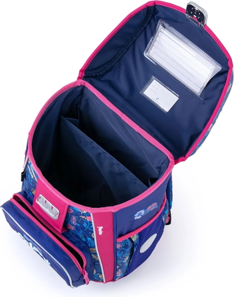 Batoh je anatomicky tvarovaný s pohodlným polstrováním a vyztuženými zády, což zajišťuje správné usazení na dětských zádech.