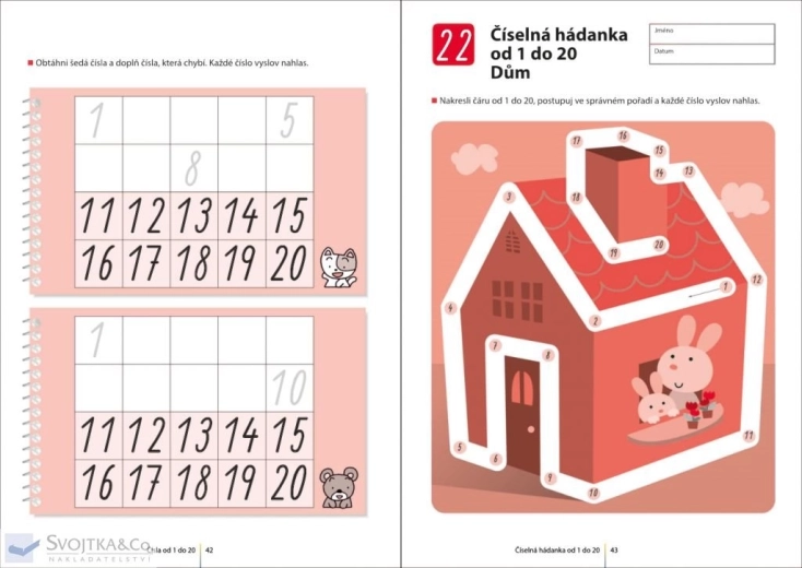 Zábavný pracovní sešit pro děti, které se učí čísla od 1 do 30. Pomáhá s jejich čtením, psaním a správným pořadím čísel, čímž podporuje základy aritmetiky a zdravý číslicový cit.