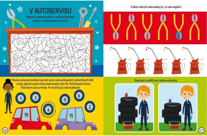 Tato kniha je ideální pro děti ve věku od 3 let, které milují auta, náklaďáky, letadla a zábavné hlavolamy. Vložte jiskru do motorů a vyjeďte vstříc novým zážitkům a výzvám!