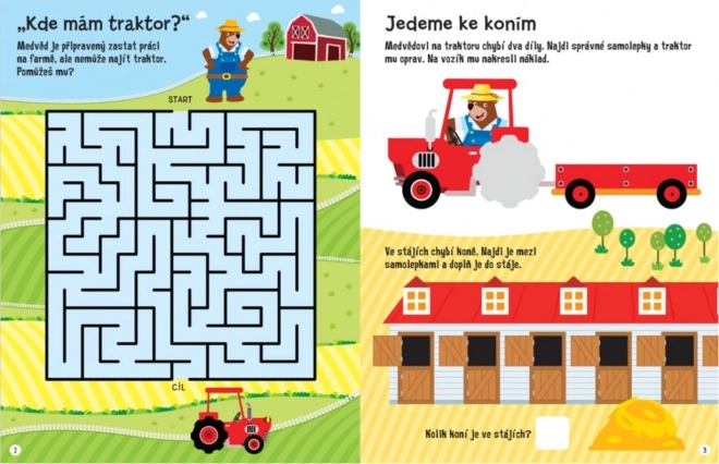 Užijte si nekonečnou zábavu na statku s Medvědem a jeho parťáky. Tento sešit plný aktivit s mnoha samolepkami umožňuje dětem doplňovat barevné obrázky, kreslit, vybarvovat a řešit zajímavé úkoly.