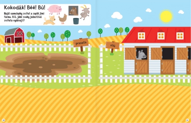 S touto knihou si vaše děti užijí skutečně spoustu zábavy na statku, kde to nikdy není nuda. Díky rozsáhlému množství samolepek mohou děti dolepovat barevné obrázky a zkrášlovat velké scenérie. Úkoly jako kreslení, vybarvování a řešení zajímavých rébusů poskytují ještě více legrace.
