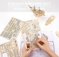 Objevte kouzlo sady ROBOTIME Rolife, kde vlastními rukama sestavíte úchvatnou 3D dřevěnou plachetnici pomocí 118 dílků!
