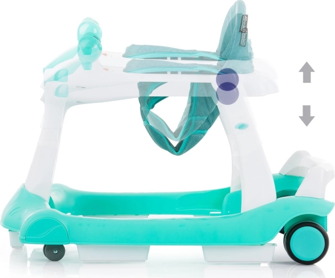 Multifunkční dětské chodítko 2v1 pro děti do 12 kg podporuje první krůčky, rozvíjí rovnováhu a koordinaci. Nabízí širokou základnu pro stabilitu, 3 výškové polohy sedátka, hudební pultík pro smyslovou stimulaci a bezpečnostní prvky včetně 5 zarážek a brzdicího mechanismu zadních gumových koleček. Snadno se skládá a splňuje normu EN 1273.