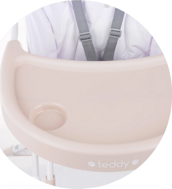 Židlička Teddy od Chipolino kombinuje bezpečí, komfort a praktičnost. Díky širokému sedáku a polohovatelné opěrce nohou se dítě cítí pohodlně, zatímco 5bodové pásy zajišťují stabilitu při jídle. Odnímatelný a prostorný pultík usnadňuje servírování i údržbu.
