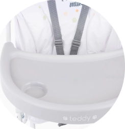 Jídelní židlička Chipolino Teddy je navržena pro samostatně sedící děti a kombinuje pohodlí, bezpečí a jednoduchou údržbu. Široké sedadlo poskytuje dítěti potřebný komfort, zatímco 5bodové pásy a stabilní konstrukce zajišťují bezpečné stolování.