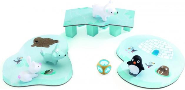 Sada obsahuje 4 detailně zpracované figurky zvířátek (tučňák, polární medvěd, bílá liška, bílý zajíček), 3 herní desky s motivem ledu, speciální díly jako rybářské otvory, most, desku iglú a 6 pilířů. Díky jednoduchým pravidlům a atraktivnímu provedení je hra ideální jako první kooperativní zážitek pro předškoláky.