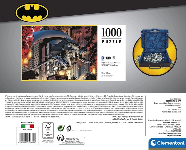 Stylové puzzle od značky Clementoni potěší všechny fanoušky BATMAN. Detailní ilustrace a přesné výseky zaručují plynulé skládání a skvělý výsledek. Praktický kufřík usnadní ukládání i přenášení, takže se puzzle hodí domů i na cesty.