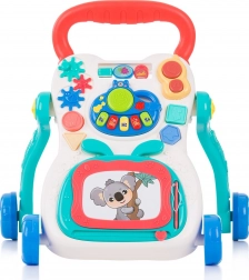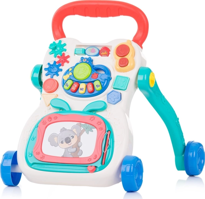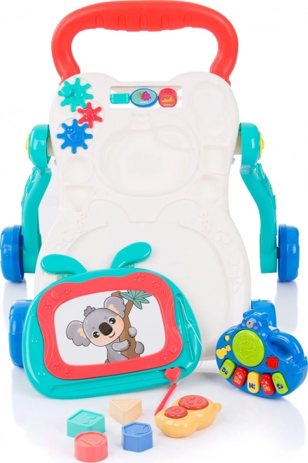 Interaktivní chodítko ke tlačení je ideálním parťákem pro děti, které už umí samostatně chodit a chtějí objevovat další dovednosti. Díky širokému madlu a stabilním kolečkům pomáhá zlepšovat jistotu při chůzi, zatímco hrací panel s roztomilým motivem koaly nabízí spoustu zábavy – od melodií a světelných efektů až po kreslení a hraní na klávesy.
