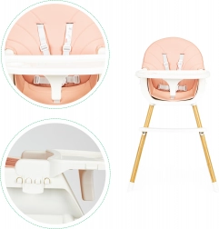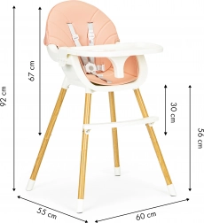 Univerzální jídelní židlička 2v1 ECOTOYS roste s vaším děťátkem. Díky snadno odnímatelným nohám a podnožce ji během chvilky proměníte z vysoké židličky na nízké křesílko pro samostatné papání, kreslení či hraní. Praktický pultík s 3stupňovým nastavením a zvýšeným okrajem pomáhá udržet nepořádek pod kontrolou.