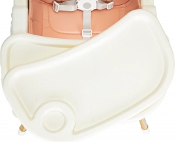 Bezpečí zajišťují 5bodové bezpečnostní pásy a promyšlená zarážka mezi nožkami, která brání sklouznutí. Protiskluzové koncovky nohou zvyšují stabilitu a chrání podlahu před poškrábáním. Měkké, omyvatelné čalounění a snadno odnímatelný potah usnadní každodenní údržbu.