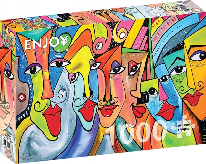 Objevte umělecké dílo s tímto puzzle s motivem Obličeje života. Skládejte 1000 dílků pro vytvoření obrazu, který měří přibližně 68 x 48 cm. Ideální pro relaxaci a posílení koncentrace.