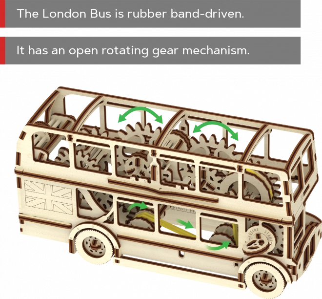 Model Londýnského autobusu je nejen symbol londýnských cest, ale i perfektní dárek pro každou příležitost. Obsahuje ručně sestavený otočný mechanismus a je poháněn gumovým pohonem, což simuluje skutečný pohyb. Přispějte ke svému novému koníčku a objevte klasickou eleganci bez plastových obalů.