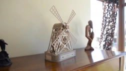 Dřevěné 3D puzzle Mlýn je více než jen stavebnice – je to reálný mechanický model, který se po sestavení stane funkčním uměleckým dílem. Bez použití lepidla nebo nářadí sestavíte model z ekologické březové překližky, který ukrývá tajemství větrných mlýnů.