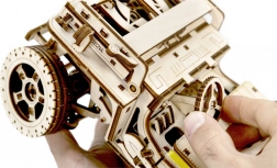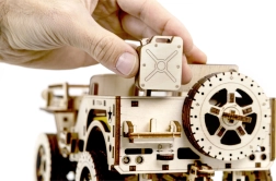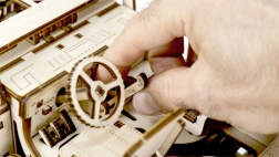 Každý díl modelu, který měří přibližně 27,9 x 15,1 x 14,8 cm, je přesně vyřezáván laserem pro přesné a hladké sestavování. Na závěr připravte vosk pro zajištění plynulého chodu ozubených kol a náprav. Sestavení musí být doplněno ulamovacím nožem, nůžkami, brusným papírem a svíčkou (vybavení není součástí balení).