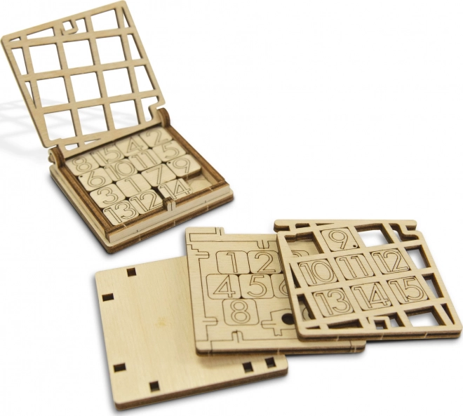 Dřevěná logická hra 15 je klasický posuvný hlavolam, který nabízí zábavný způsob, jak rozvíjet logické myšlení a motorické dovednosti. Tato hračka je snadno složitelná bez potřeby lepidla nebo nástrojů a díky svému kompaktnímu designu je ideální pro cesty.
