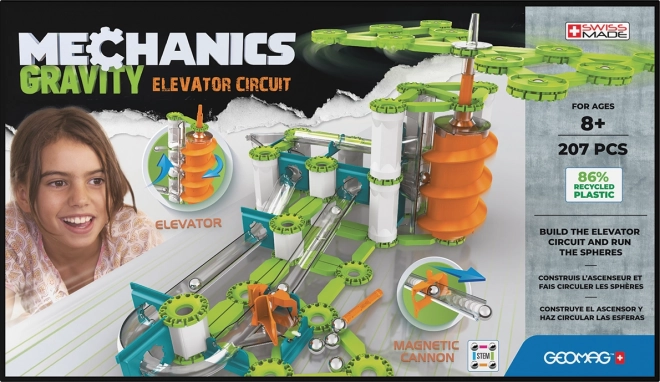 Geomag Mechanics Gravity je stavebnice, která kombinuje magnetismus s mechanikou, stimulujíc kreativitu a vynalézavost. Obsahuje magnetické tyčky, kovové kuličky a mechanické prvky z recyklovaných materiálů.