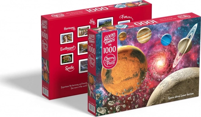 Vychutnejte si klidné chvíle se skládáním motivu vesmíru nad měsíčním horizontem, který se po dokončení promění v obraz o rozměru cca 70 × 50 cm. Díky 1000 dílkům nabízí příjemnou výzvu a nádherný výsledek vhodný k vystavení.