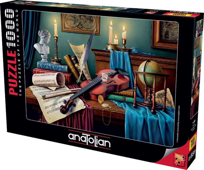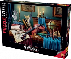Pusťte se do skládání elegantního motivu Stůl houslisty a dopřejte si chvíle klidu i soustředění. Puzzle ANATOLIAN vyniká přesným výřezem, kvalitním tiskem a sytými barvami, které motivu dodají jedinečnou atmosféru. Praktický stojánek umožní jednoduše umístit víko krabice jako předlohu a mít obrázek neustále na očích.