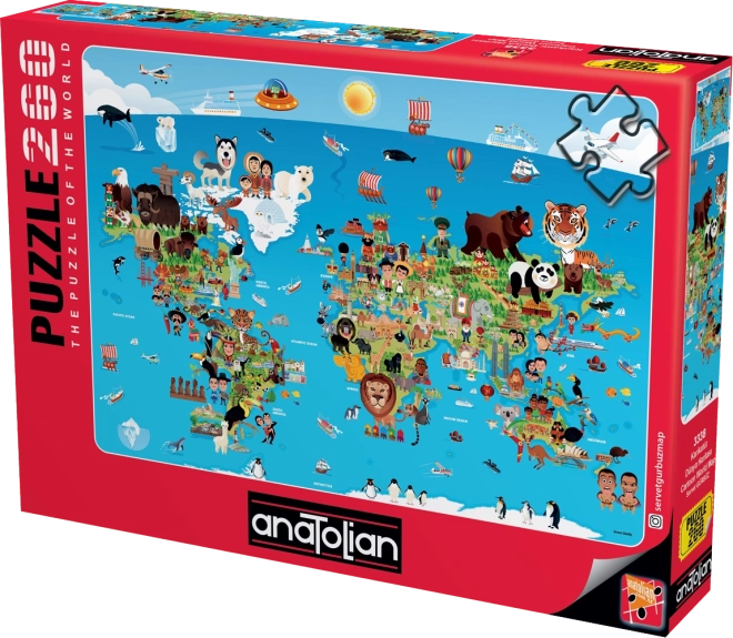 Hledáte puzzle, které spojuje zábavu a vzdělávání? Kreslená mapa světa od značky ANATOLIAN přináší roztomilé ilustrace kontinentů, zvířat a památek s popisky v angličtině, takže si při skládání přirozeně procvičíte i cizí jazyk. Díky 260 dílkům je ideální pro školáky i rodinné skládání.